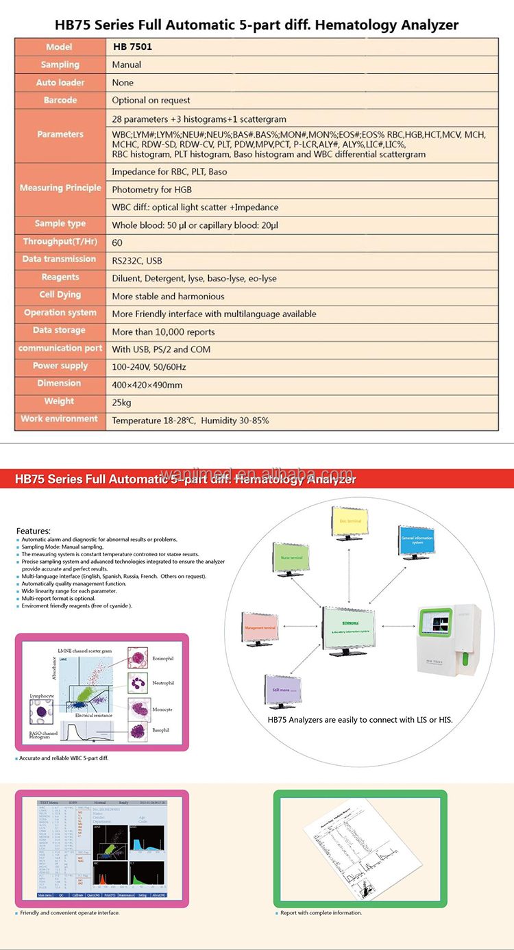 Medical Equipment Auto Cbc Blood Test Machine Hematology Analyzer Features:
